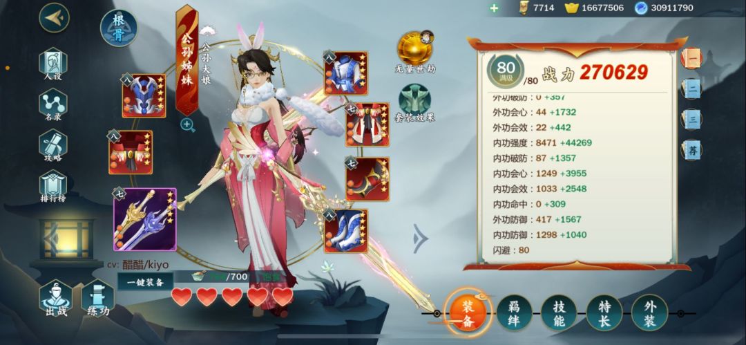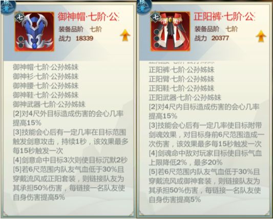 御神正阳套全攻战主堆强度,打一个破防和一个会效,会心不用补;防御孔打外防。