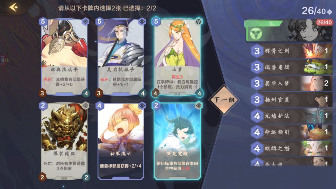 第九抓,昙花入梦和不懈生机,麒麟之怒不能选太多,选多了卡手,不懈生机还是为了奶脸苟住