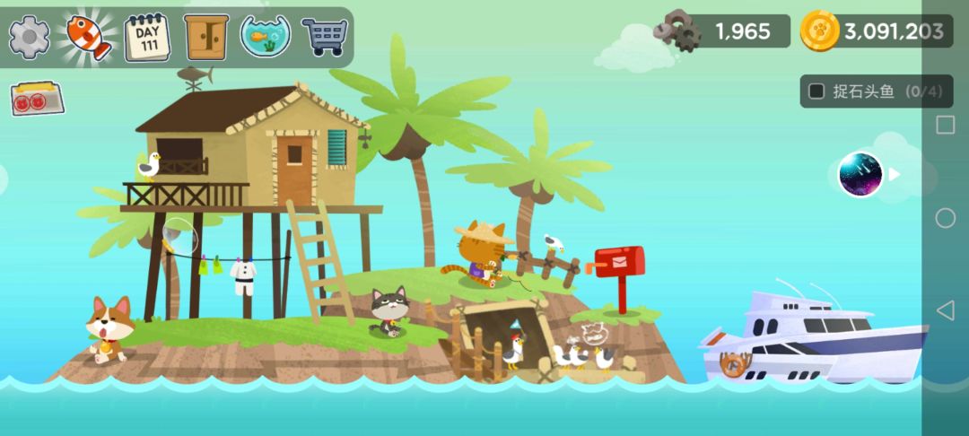 在海草地区的时候,旁边的猫弟弟给我刷了一个该杀千刀的石头鱼的任务,而石头鱼除了洞穴地区有极小概率出现外只有猫乐园有,等于变相掐断了我一条获取零件的路。所以我只能想尽一切办法攒零件去猫乐园,这也就意味着我除了买必备的船外我不可能像其他的大佬推荐的那样买更多的鱼枪。