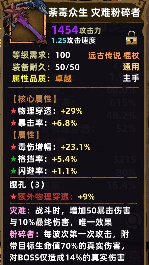这游戏花时间的就是肝好的装备属性,我武士套属性勉强能看得过去,武器暗杀和灾难粉碎者只是凑合用