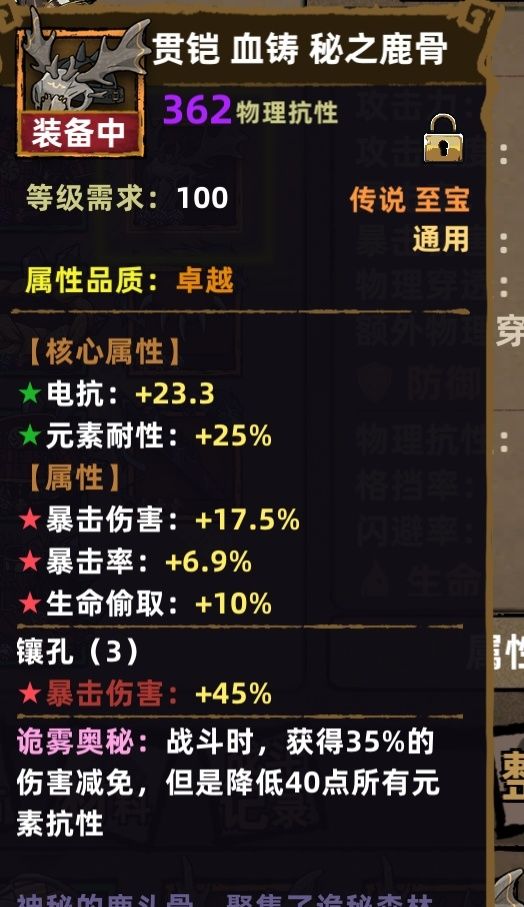 获得35%的伤害减免,虽然减少40的元素抗性,但是我认为影响不大。