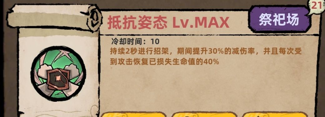 实在打不过了可以换下面这个技能,2秒提升30的减伤率,恢复生命。下面这个技能是看准怪物准备攻击就用的,防止被秒。