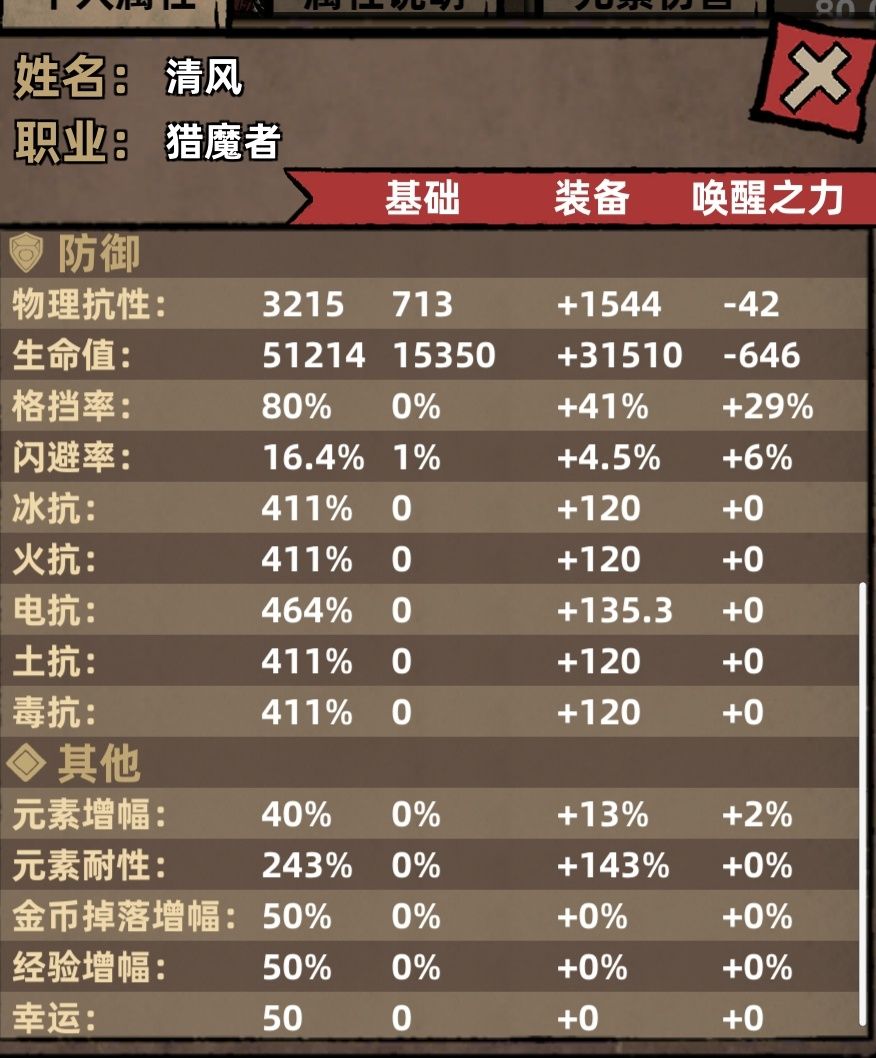 虽然武士套有着10%的减伤和降低怪物25%的攻击力,至宝能减伤35%,但是格挡和闪避最好最好要搞满,格挡80%,闪避20%,格挡必不可少,能减免很多伤害,闪避看人品。 生命偷取也最好高一些。