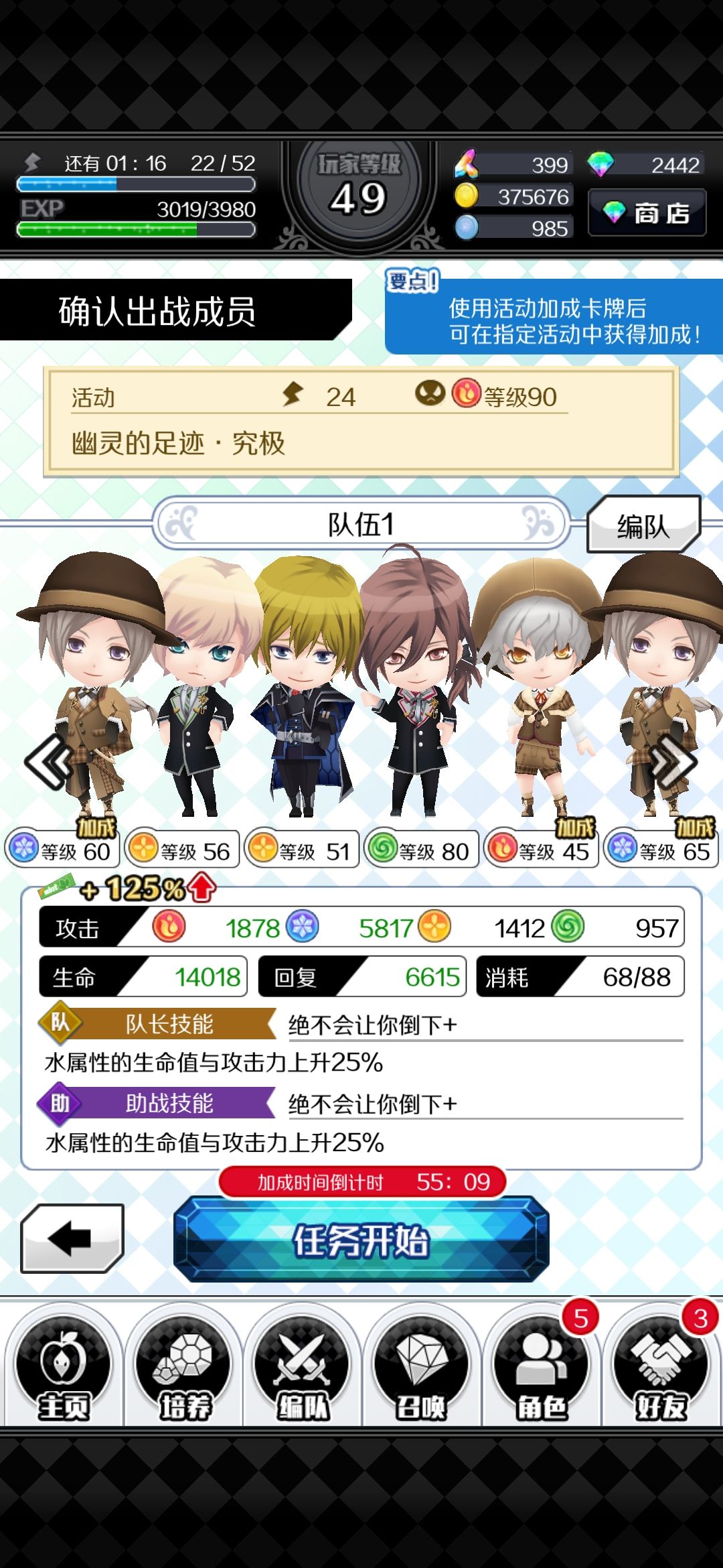 如果说练度还要更低,可以试试凑个水属性多一些队,靠着输出+回复+延时磨死。不过活动卡加倍还是挺凶的。