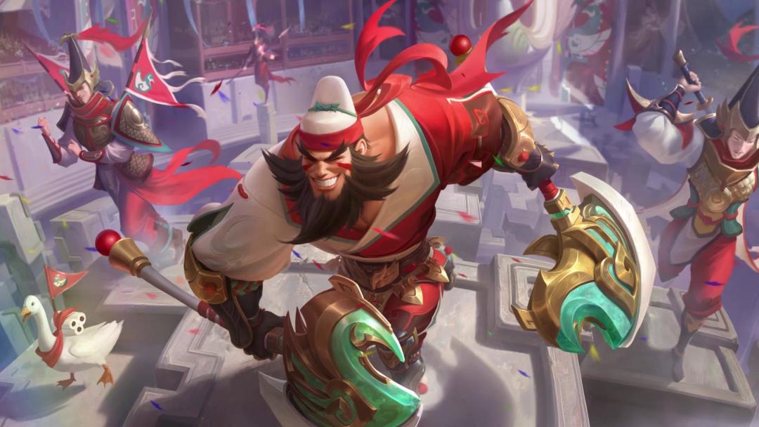 【皮肤故事】长安鸿胪寺举办“鸿胪演武”大赛,程咬金换上羽状纹服,手持锦鸡双斧,担当维持秩序的总统领之职。他将以热血与纪律,将大赛顺利地进行到底。