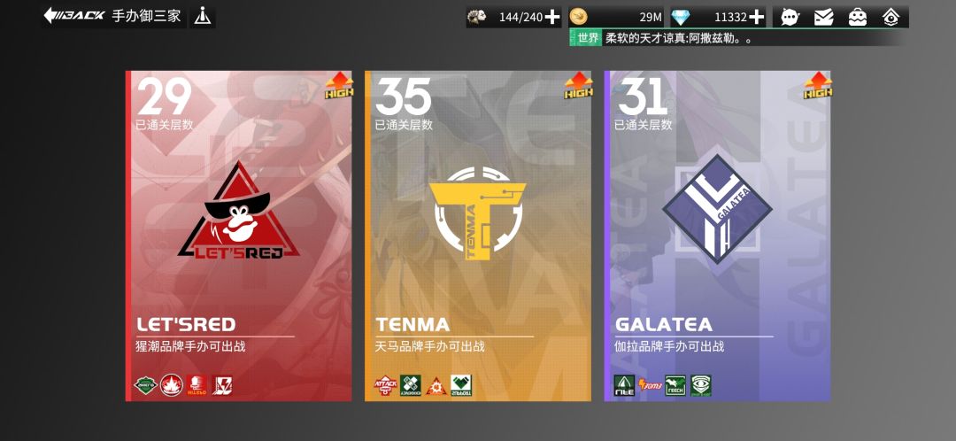 目前入坑《高能手办团》5个多月,至今零氪;主线推进到31-12;已有7个[粉色5星]以上手办,其中狩猎者[钻石2]、格雷豪斯[钻石1],潜在[粉色5星]手办5个以上,缺狗粮;[手办御三家]平均30层;[终焉之战]17层,[阿撒兹勒]15层;[雨夜噩梦]283F。