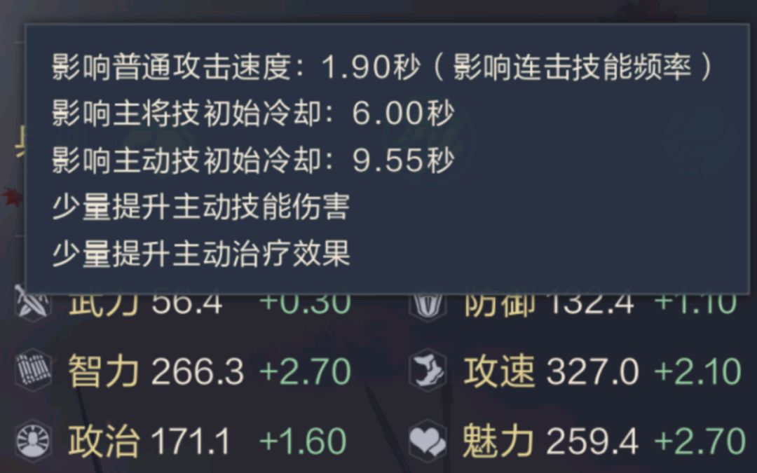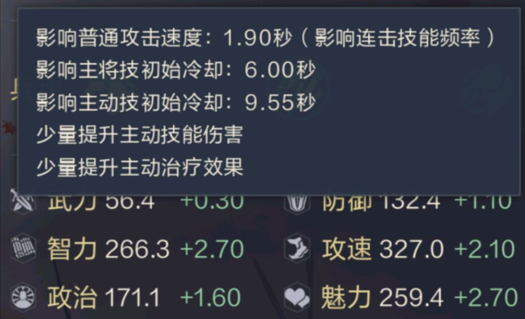攻速则影响主动武技部分伤害,普通平a伤害总量(不考虑缴械情况),是武力伤害的次要来源