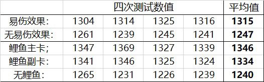 鲤鱼分别放置在主副卡位置,测试易伤加成情况。