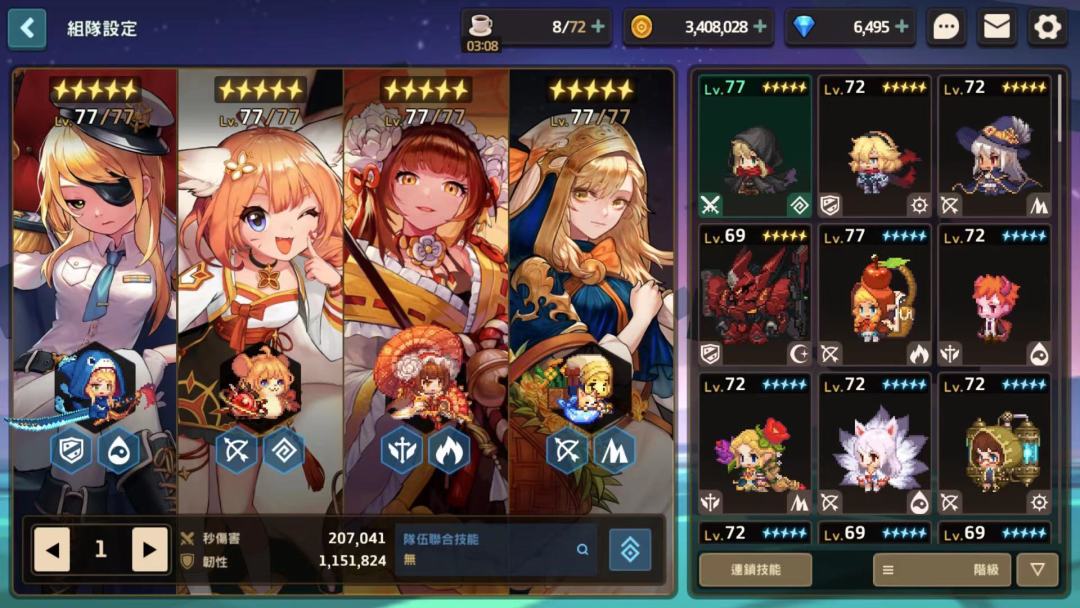 工会讨伐战: 每个人需要至少有3个队伍, 一起打boss那种.很多二星角色很好用.