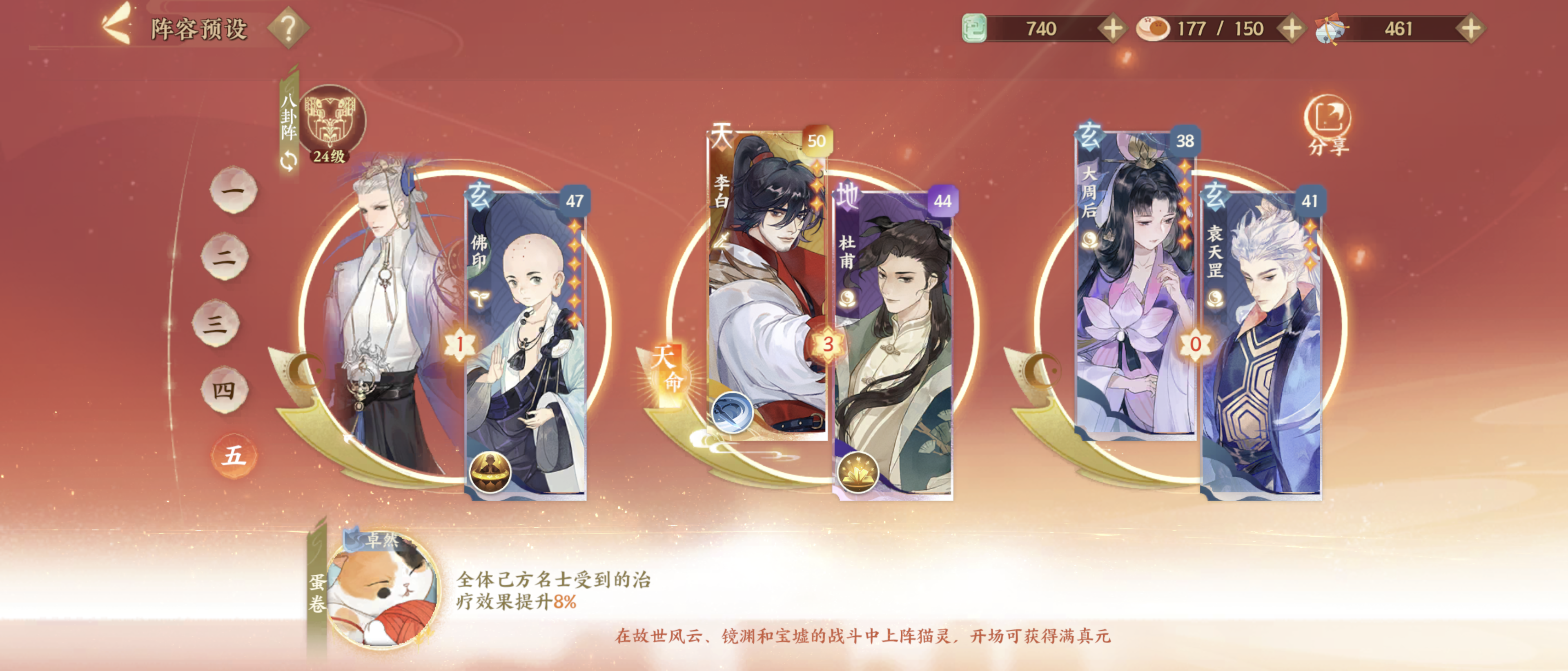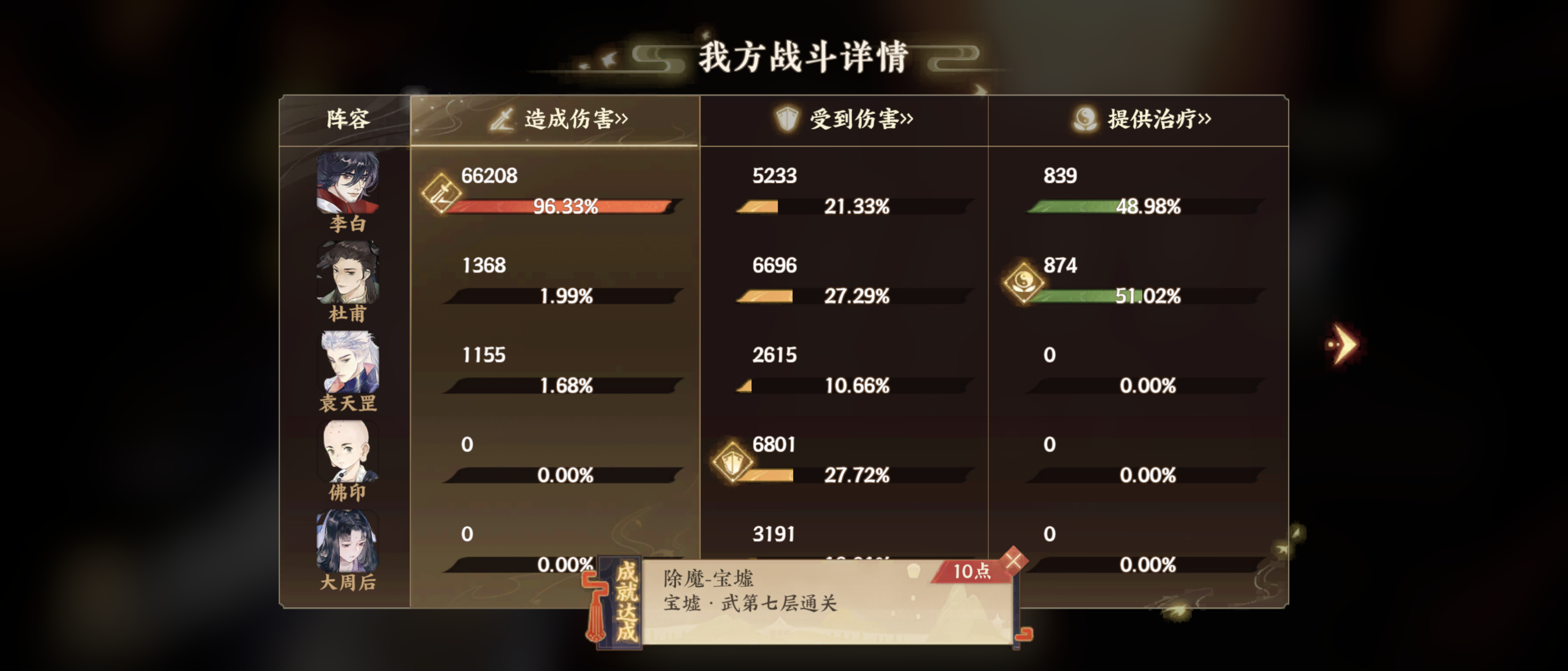第一回合 boss干掉佛印 大周后提李白速度 李白开大并触发桃源居每天随机的不消耗真元buff