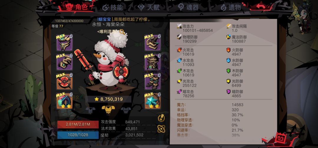 我这次吃的buff有:4个生命5,1个大功5,4个火抗,