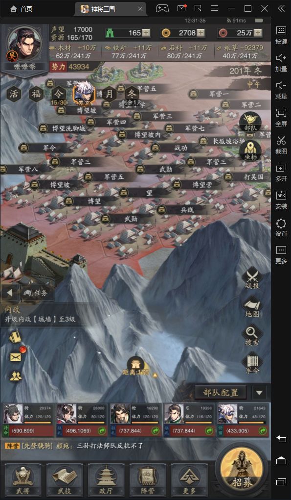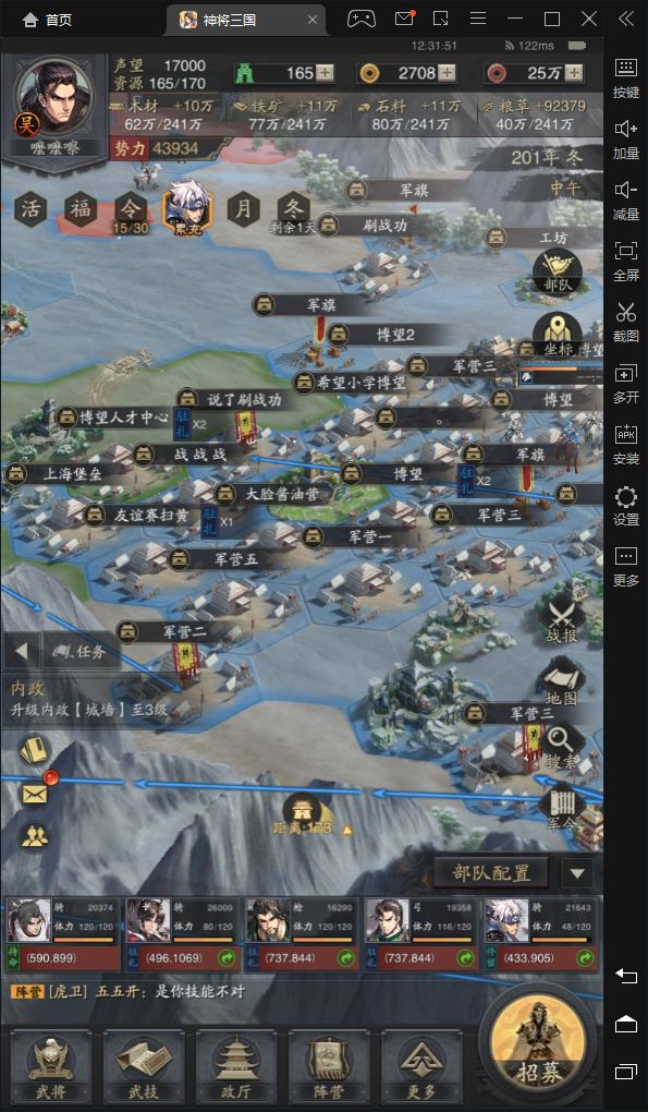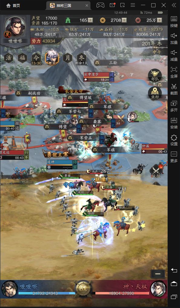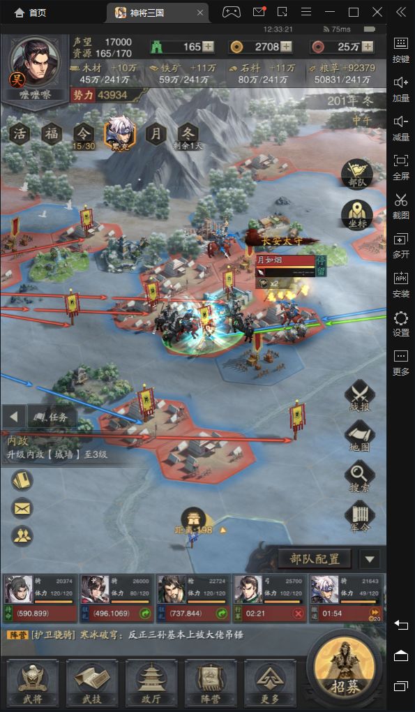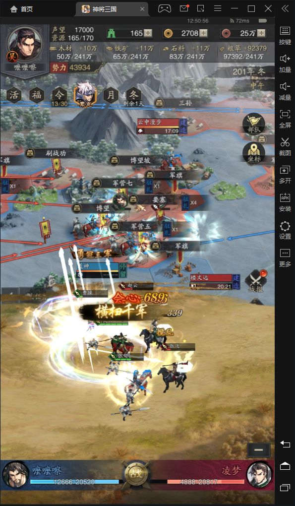 由于武将,技能匮乏 本人被打的可以说体无完肤 兵力早早被打光 只能坐以待毙