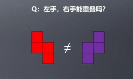 当然,在俄罗斯方块里我们还有Z形和S形方块,这两个方块看起来是不是十分的相似?七块儿有时候在消除的时候就不小心看错,而这样相似却并不相同的形状,在化学当中也是存在的。S形和Z形在镜子里面是可以反射的、对称的,但是不能够完全重合。这个特点在化学上叫“手性”,因为就像人的左右两只手一样。
