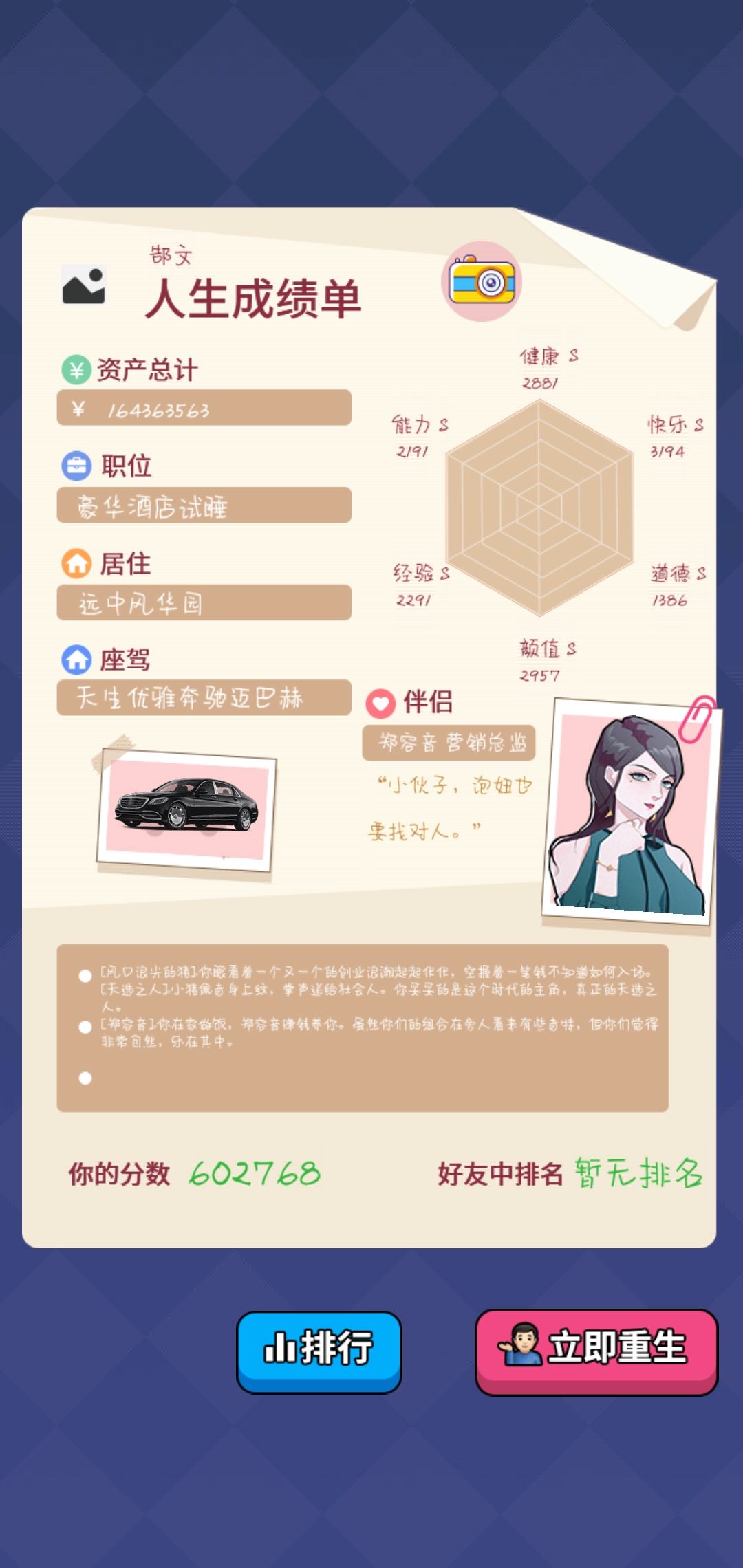给爷整笑了,哈哈,我就喜欢汐汐这样的,结果怎么攻略都没到结局,反而和看脸妹妹结婚了,最后结局是女强人。好家伙,我本来以为我在和汐汐在一起之后和别人搞暧昧会被抓,或者最后在里面选一个,结果,好家伙这边处上对象那边直接结婚了?