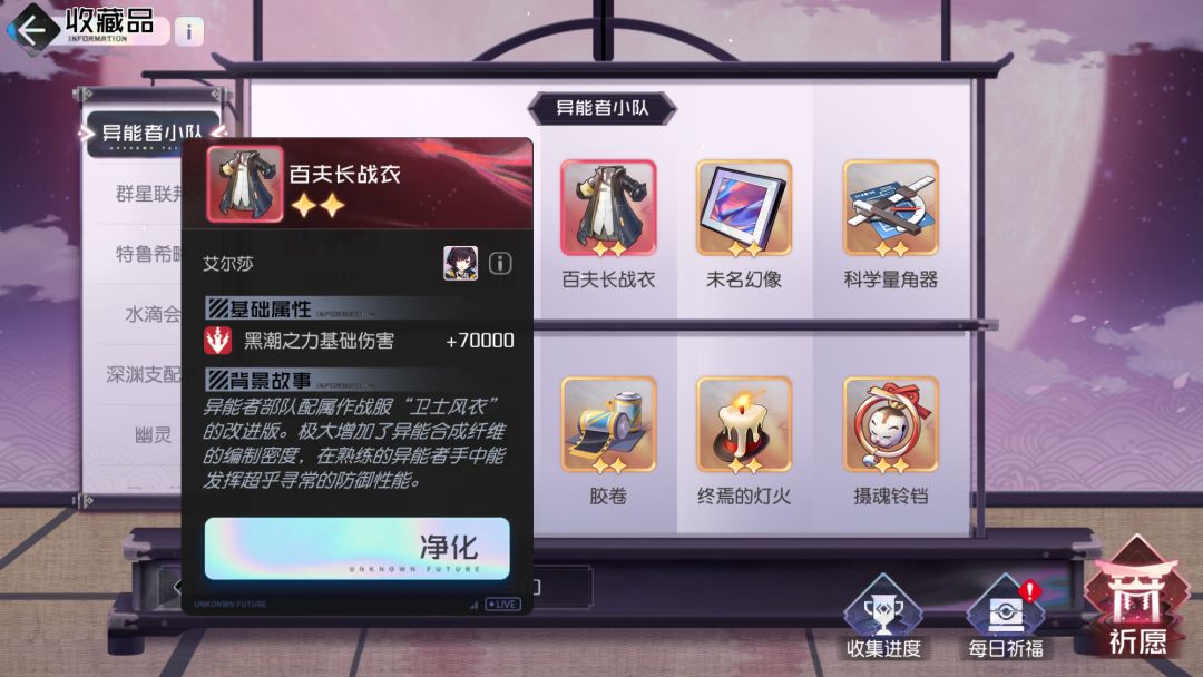 通过专属活动获得的“百夫长战衣”可以有效提升艾尔莎专武【黑潮之力】的灵魂伤害。