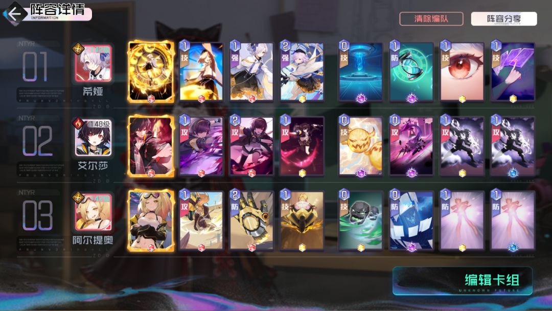 对于前中期艾尔莎品阶和装备没有那么好的情况下,可以尝试以下这套艾尔莎“背摔流”打法,适用于世界线前十章。