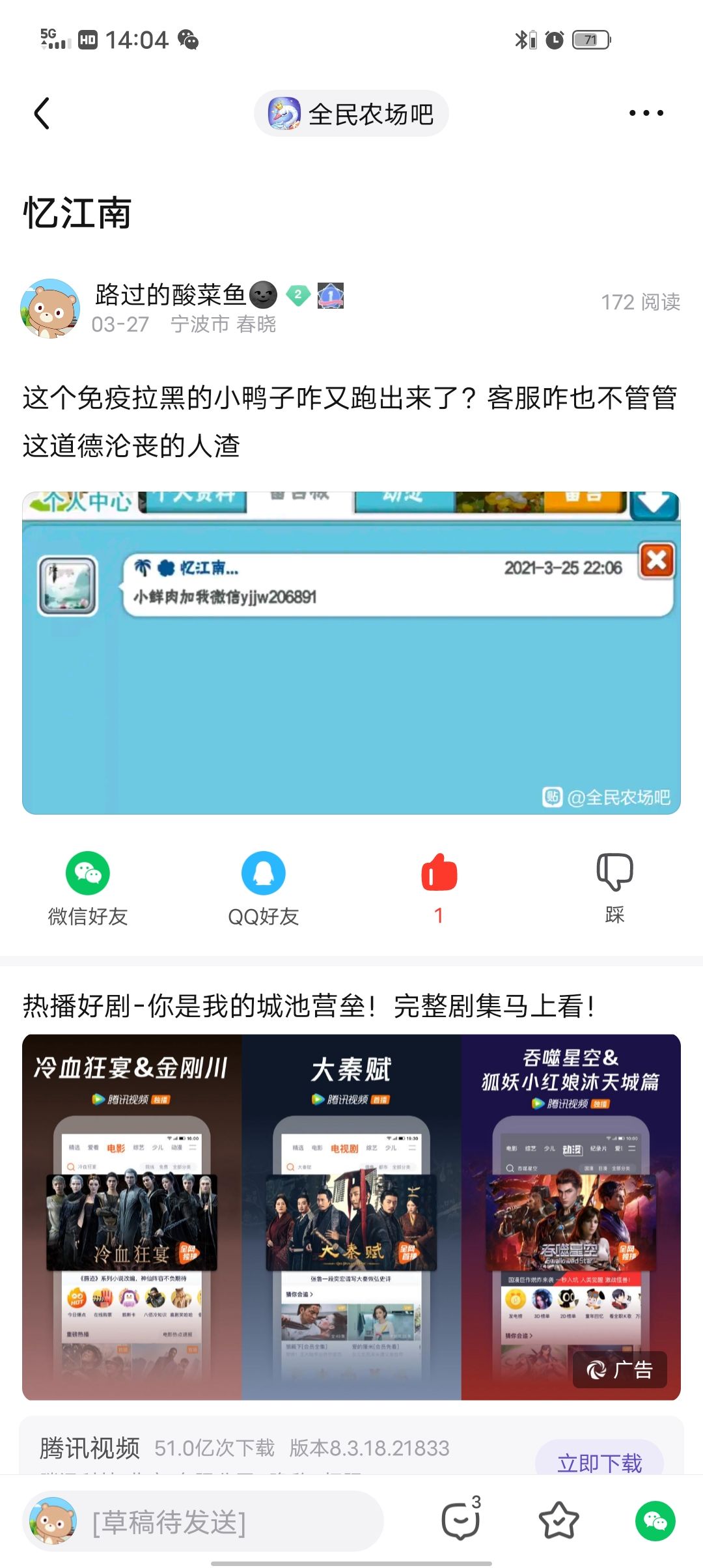 这人无视拉黑,投诉过,但是无效,现在又来了,再投诉,被封号,惹不起了