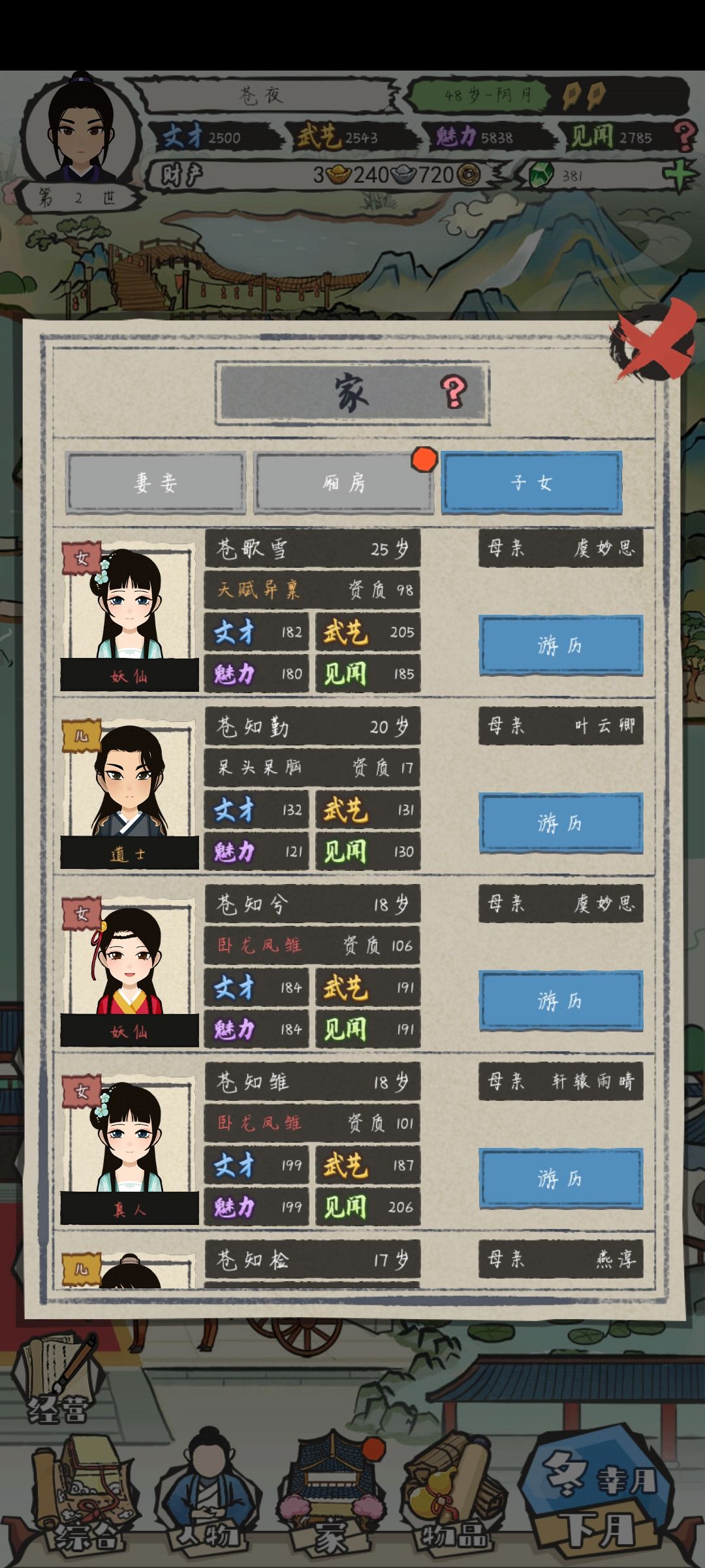 游历时认识的人物可以成为子女可攻略对象,到达某成条件可以嫁娶