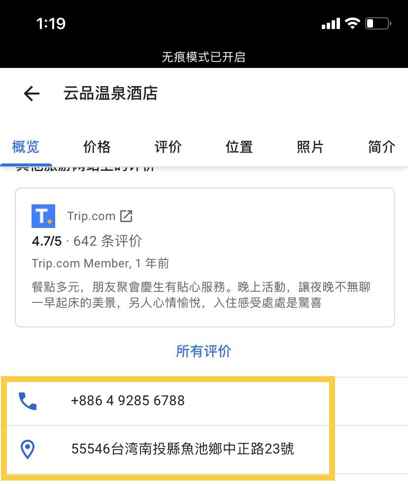 可以在网页上搜一个台湾的地址或者最简单酒店的地址,就会获得上面需要的信息了