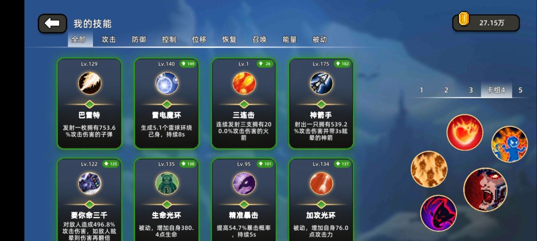技能组合如上,进图开怒召唤猫哥分身,开召唤攻击加倍,猫哥一巴掌1w多很快哈,我的今天buff是大佬体验卡,效果是技能满级