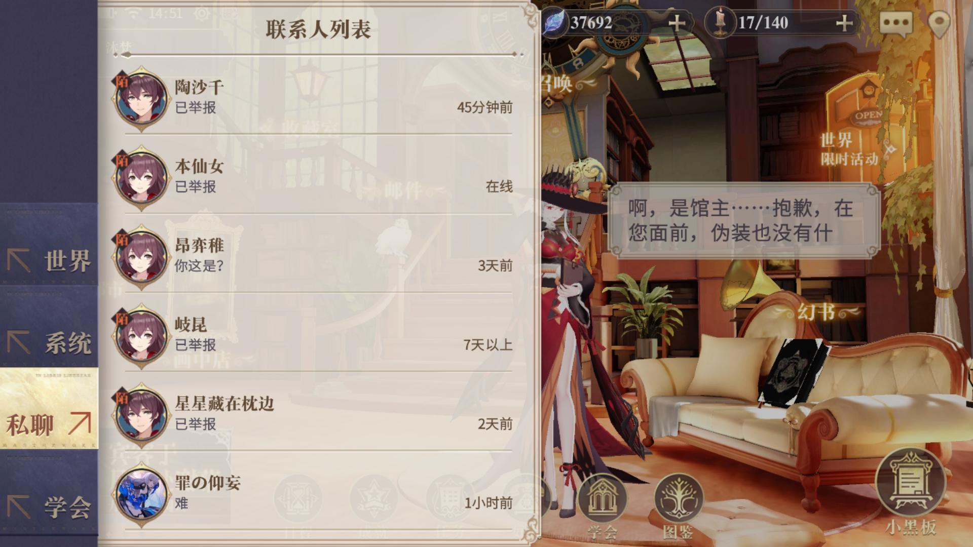 考虑出个禁止陌生人聊天的开关?还有好友也是,一天天的一堆6级小号加人,tmd的烦死了,躲也躲不开,也不能闪,给安个禁止陌生人聊天的设定好不好,设定添加好友的等级下限给玩家自己设置呗,这单机游戏哪来这么多社交。