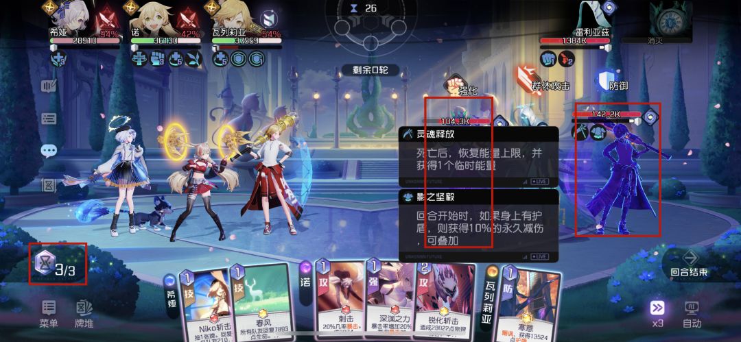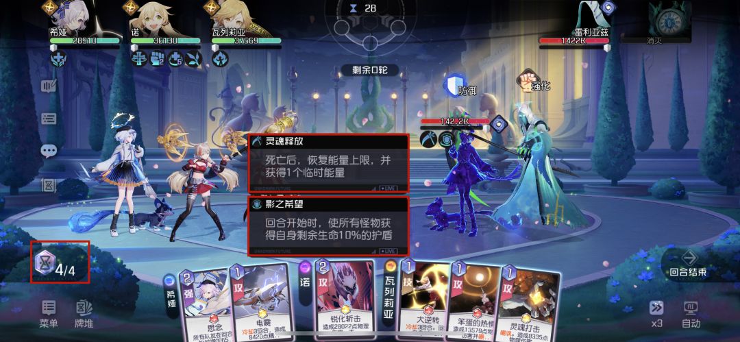 2、第二回合BOSS召唤阴影,造成能量点减少,并获得额外攻击人,需要集中火力优先击杀阴影。