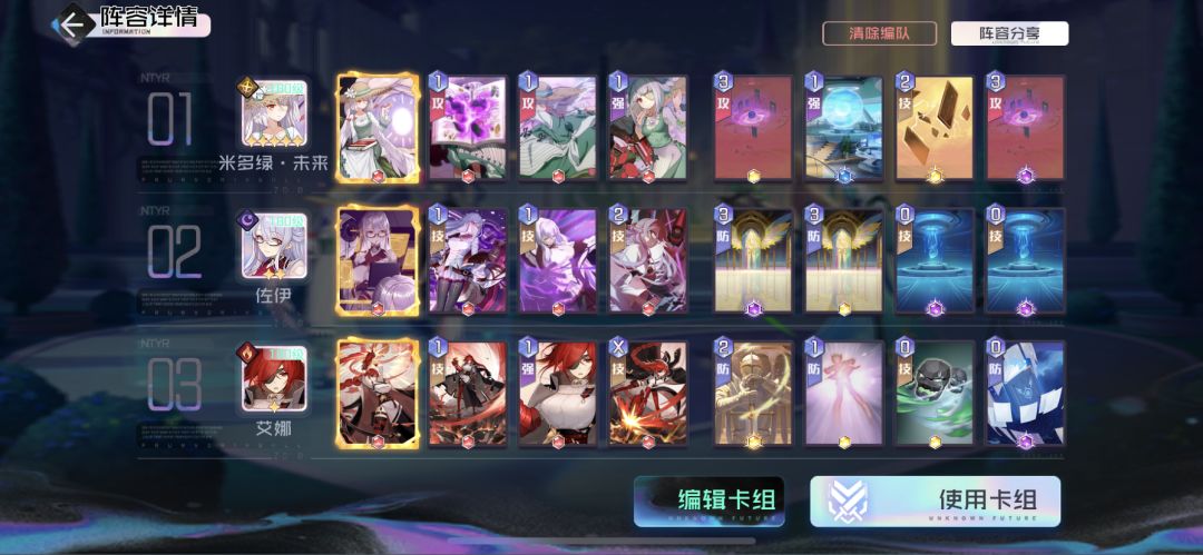 本关卡对伤害能力要求很高,输出选择最高战力,绿来唤醒+双大冲,配合佐伊抽牌能力在一回合打出足够伤害,并且佐伊万华镜还可以补充充分防御力,守护系角色可以根据自身情况变换。