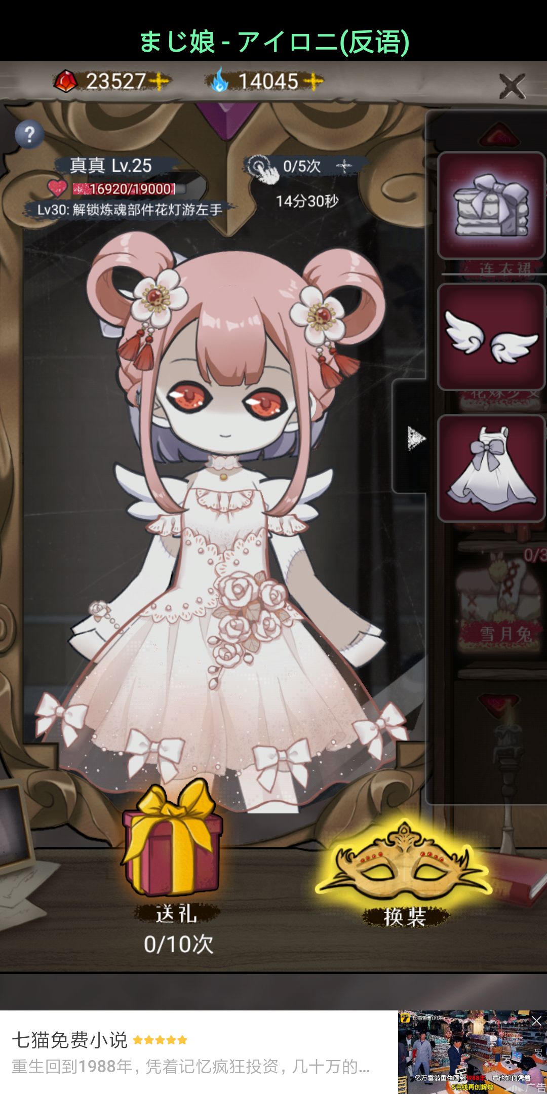 换服装的时候,基础服装换不下来,其实刚开始翅膀不能换掉也还可以接受,可解锁了新头发后,就成这样了……