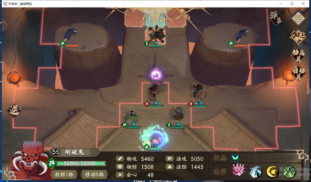 第一回合站位如下,用主角的蜘蛛直接去勾Boss。从此Boss不但放不出光线,连buff都加不了。