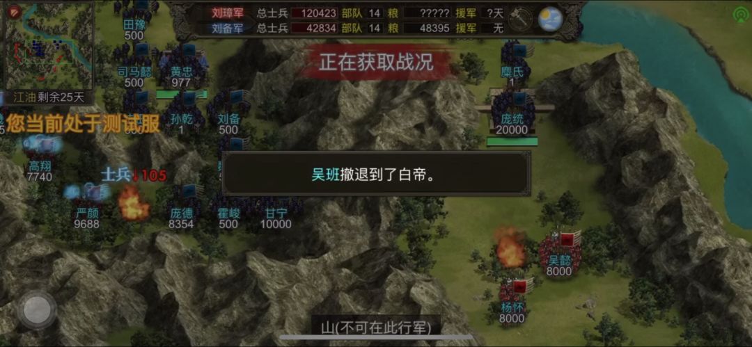 战场方面的话,因为电脑AI会兵分两路,所以我选择卡住两个位置,一个是江油的小路(5个奇袭➕单挑将)其他的可以带3射程的火箭,一个是关卡(2万兵力的庞统,混乱➕内讧➕倚天剑,或者背后徐庶带治疗),兵装大幅度减免物理伤害!但是计谋和火的伤害减免不了,所以奇袭,内讧,这两个技能直接封神!