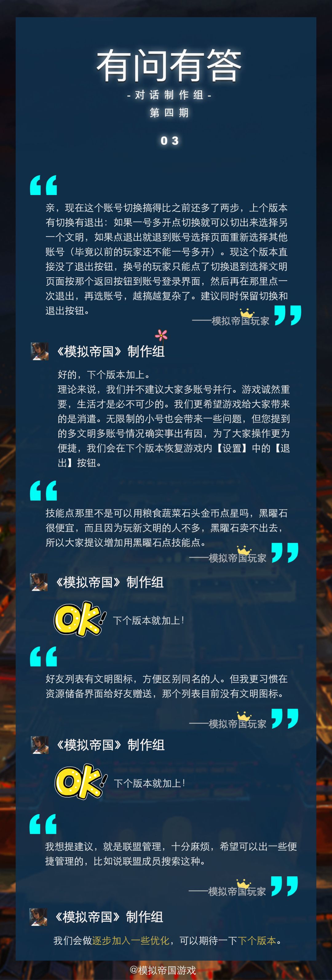 有问与答|对话制作组第三期 - 模拟帝国(测试版)官方活动 | TapTap 模拟帝国(测试版)社区
