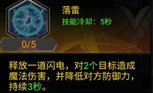 雷电麻痹,满级降低18%攻击力;落雷,满级降低50%防御;雷鸣三界(融合技),降低30%防御和30%攻速;惊雷,降低32%命中;闪电穿梭,保命技,200可学。