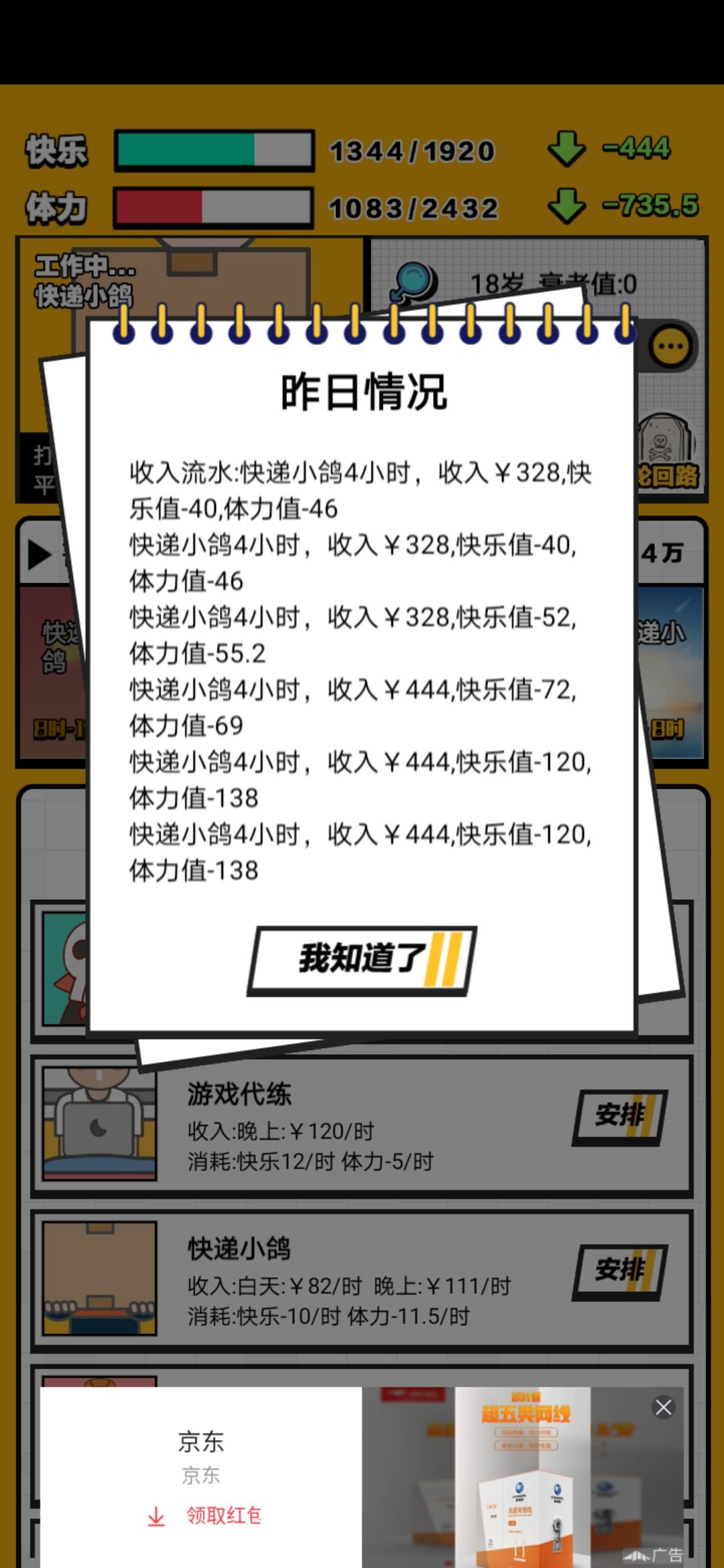 如图。快递小哥体力是-11.5每小时。实际上扣除的只有8点到16点(朝8晚4)是按照11.5来扣。