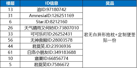 活动结束后小仙官会在全部都回答正确仙友中抽取10位送出君无白异形抱枕+定制便签贴一份
