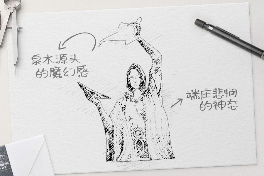 又如在霍加斯地区的一座雕像,其手中的神灯,在设计师们的巧妙构思下,精准地和种族背景故事镶嵌!它是某位神族遗留下来的神物,据说在特定条件下能有神秘的作用,这也是设计师们参考了经典之作设计出来的,可以说是致敬经典了!
