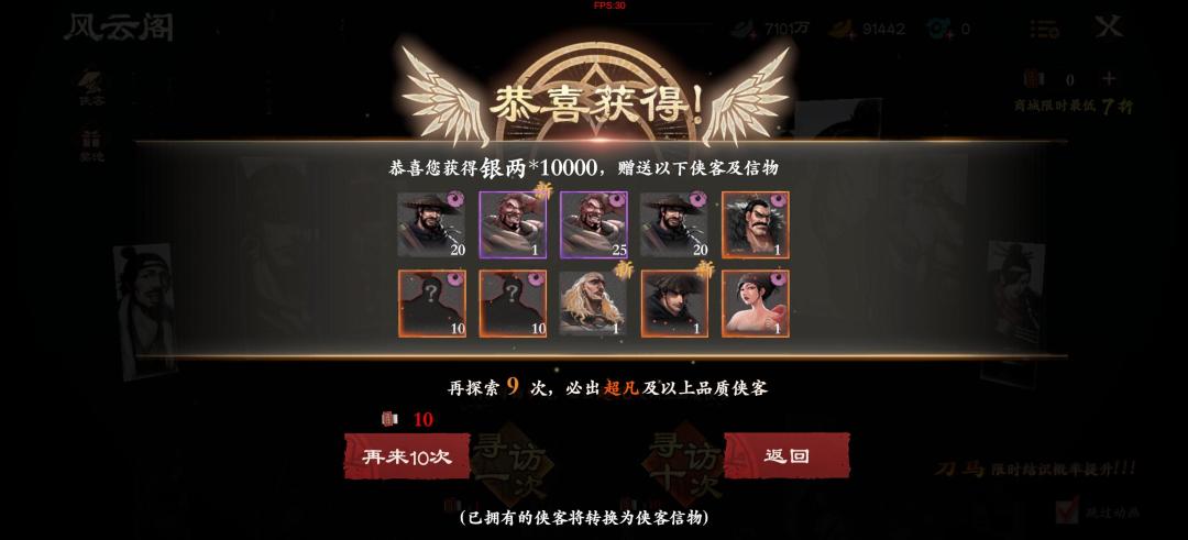 无双侠客刀马入驻风云阁,而且还有抽卡限时返还活动,相信各位镖客大人都已经跃跃欲试了,团长再来加码福利,只要你晒出抽卡截图就可以找管理员(QQ772569042)领取一份礼包,还有机会获得侠客十连抽!