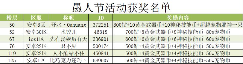 ⑤幸运奖:在本帖参与回复(正确填写信息)的玩家中随机抽取各10位获得200钻石