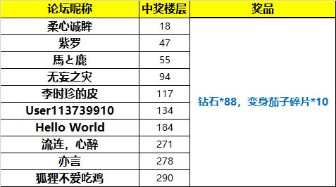 幸运奖(10名):钻石*88,变身茄子碎片*10
