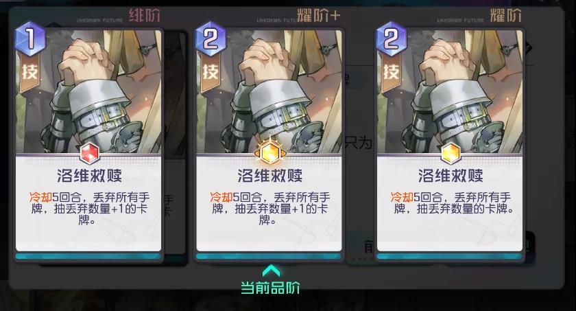 属性:丢弃所有手牌,抽取丢弃数量+1的卡牌。(耀阶抽取数量和弃牌数量一致)