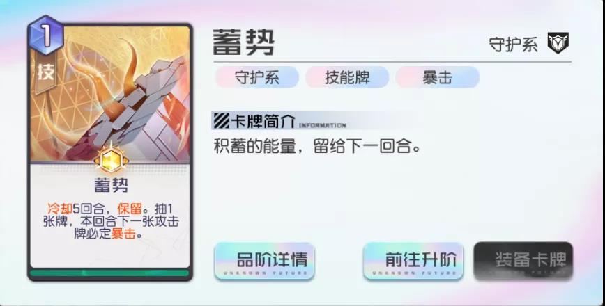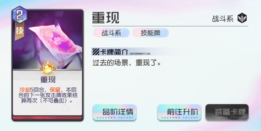属性:抽一张牌,本回合下一张牌必定暴击(绯阶2张牌暴击)