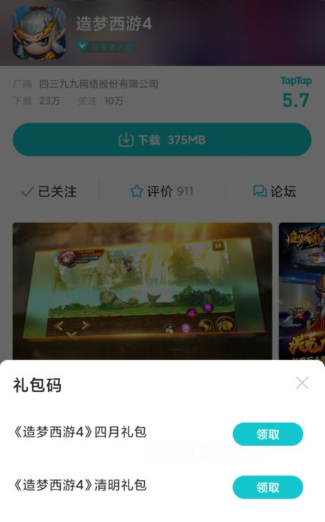 在TAPTAP搜索《造梦西游4》即可在游戏主页领取