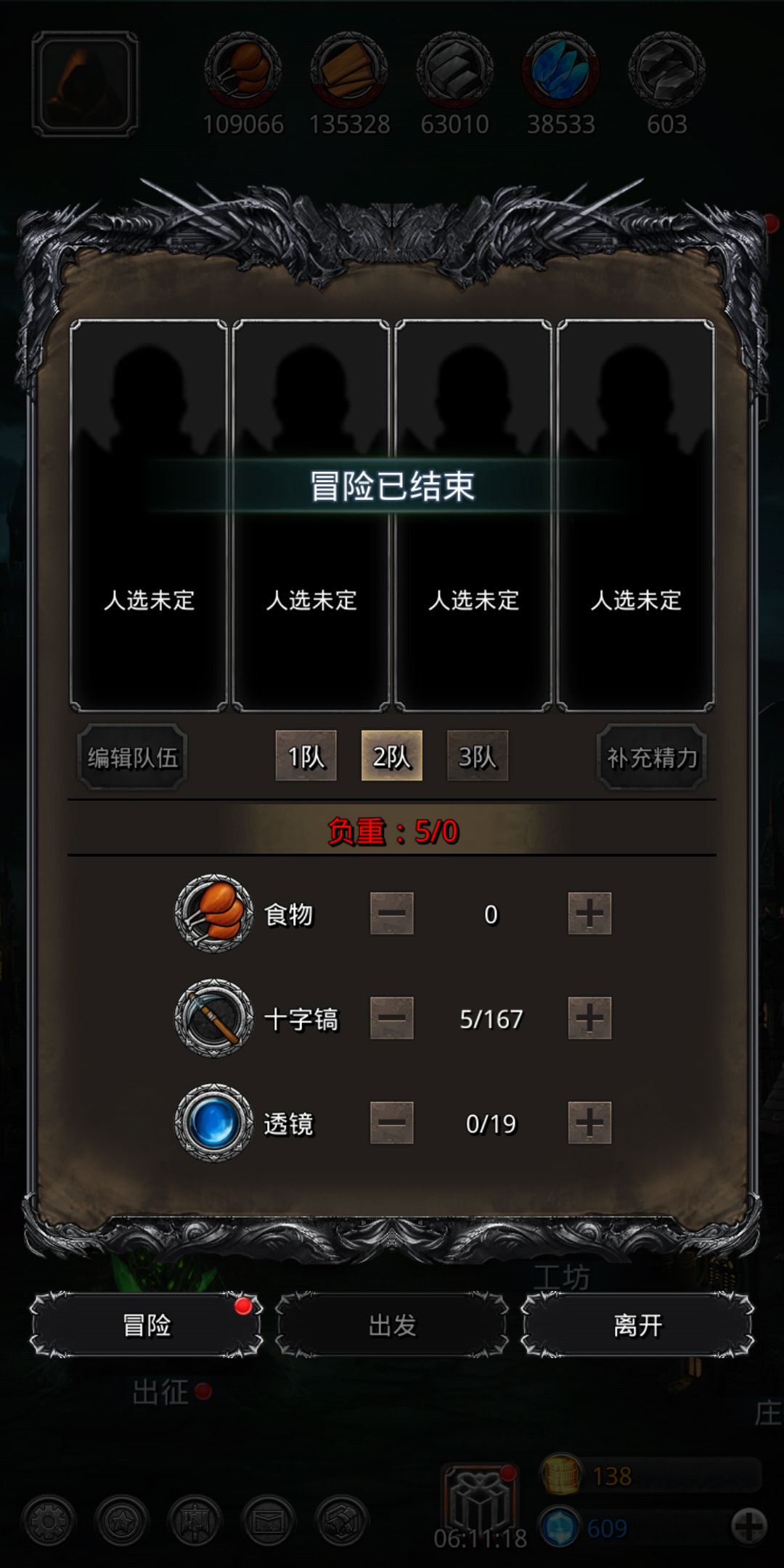 我在冒险者出去冒险的时候把人全下掉了,但是冒险结束的时候没有人却点不开了,怎么办啊