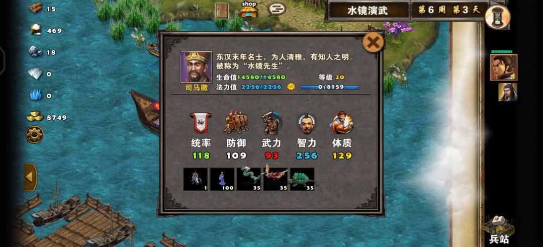 6、司马徽,兵强将弱,带上所有兵干就完了,可选择将一部分刀盾兵升级成百夫长或者是将骑兵升级成西凉铁骑,先打掉3大神兽和2组散仙,然后就磨死他就行了。
