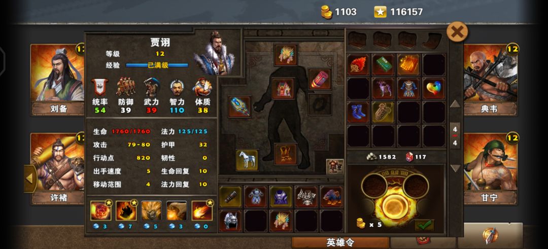 总结一下,刘备贾诩操作轻松,看装备。