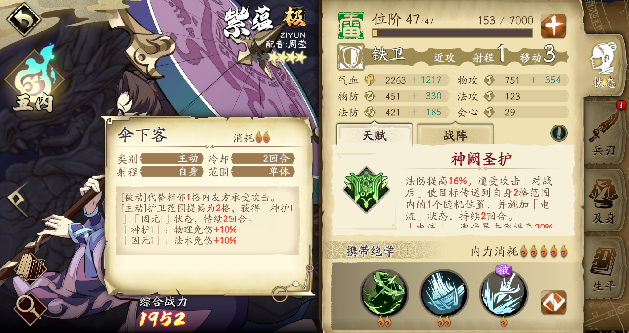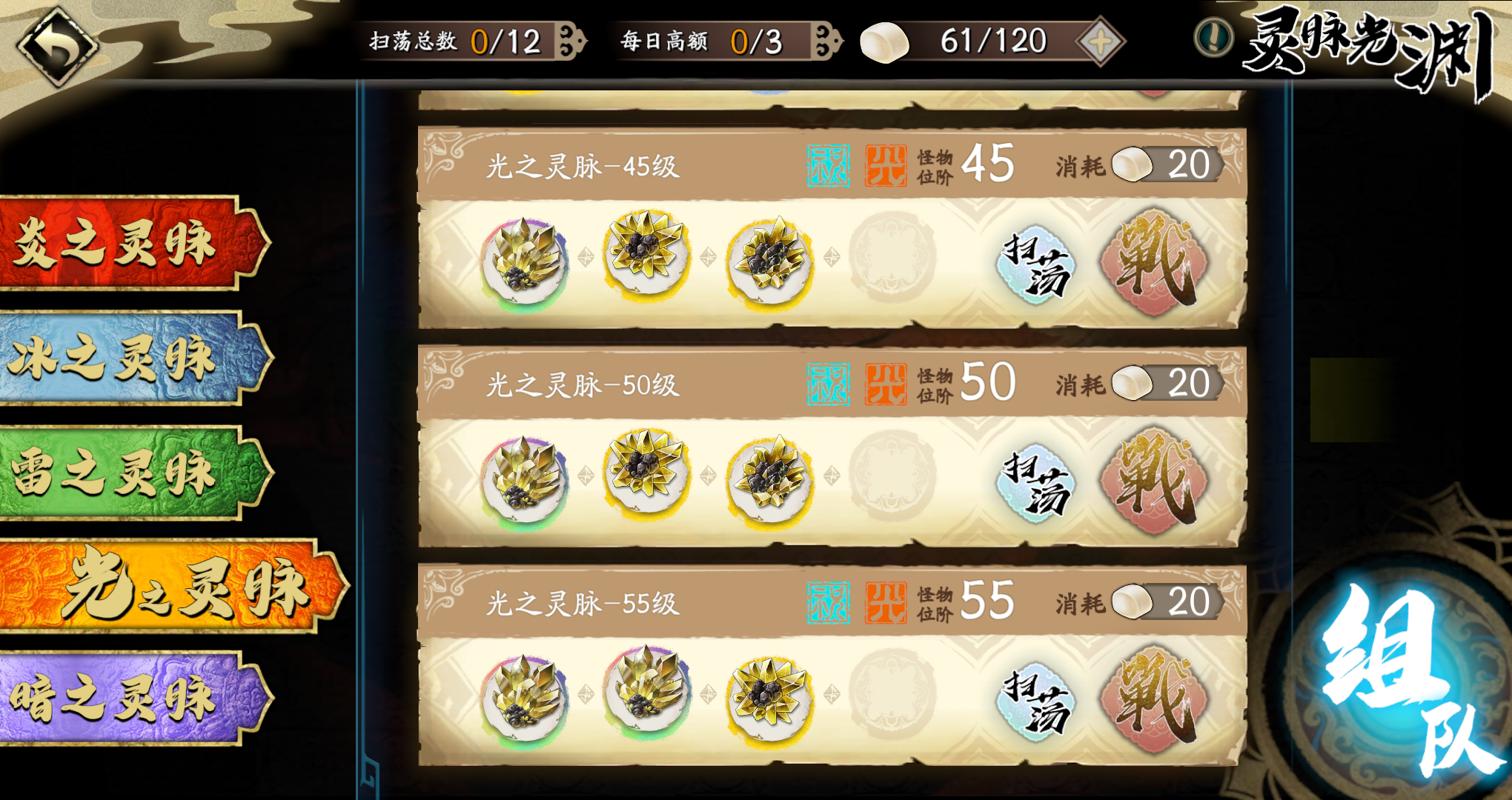 晚上吃了饭把紫韵整理一下,进军了55光灵脉。随便拉起来竟然扛得住55光boss大招,当然少不了太渊的退魔符功劳,跟冰璃带双避实就虚。无缝衔接,不会有1回合空挡。被动挨打给boss上电流(攻击电流目标+20%暴击率),冰璃基本每下都暴了。第十回合搞掂,最后清2个小怪,太渊还是大功臣啊,越级打啥本都不能没了他。