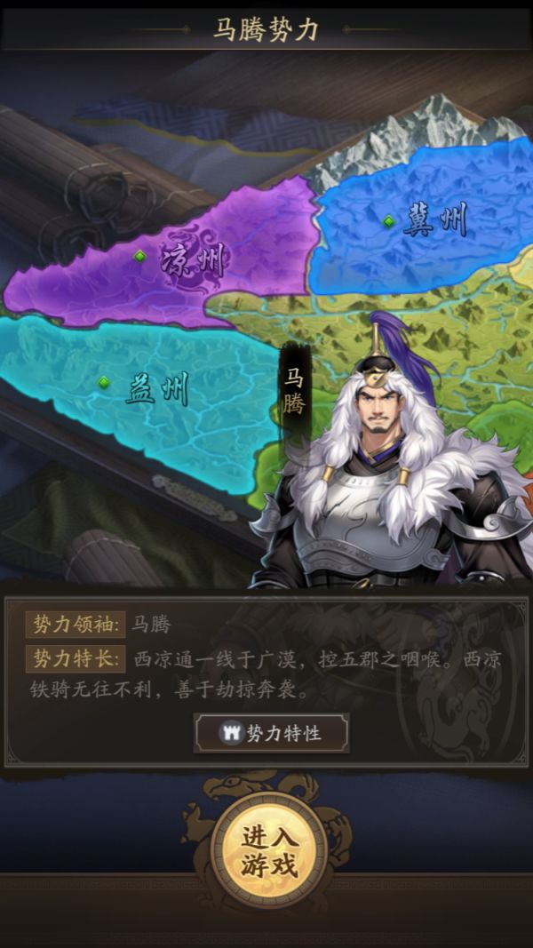 特·西凉骑兵:携带西凉骑兵时,若目标是其他骑兵,则造成武力伤害提高