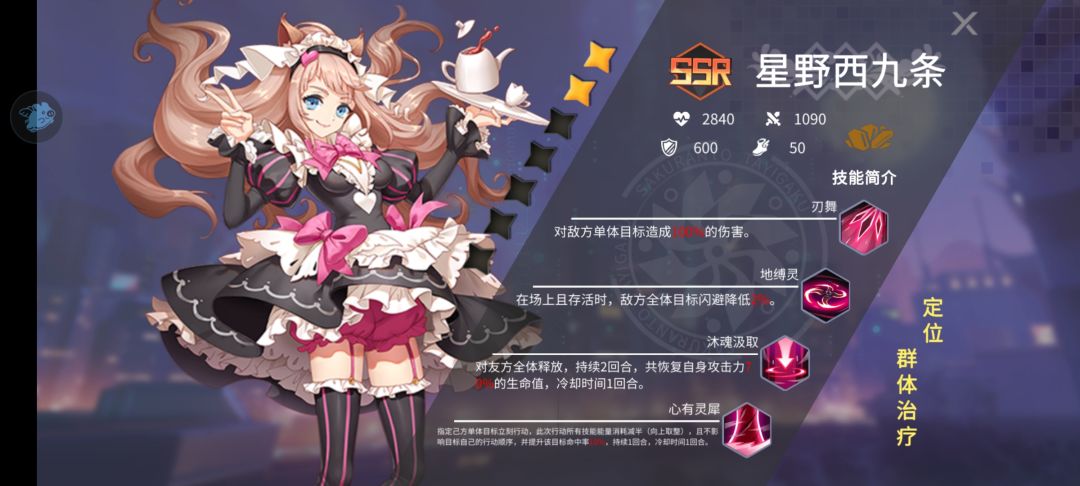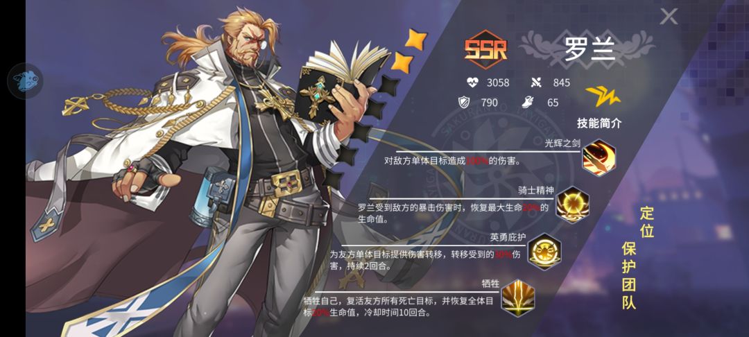 最后一个位置我犹豫了很久上不上第一奶妈铃木,还是上前期比较厉害的肉坦罗兰,或者是单体强卡服步?后面想了想我目前并不需要单体补刀,战略中也没用能量支持单体卡补刀,就算了,主C自带回血不太需要奶妈,所以我最后选择上一个工具人罗兰,硬减伤害就完事了,也不去觉醒,因为大招群体复活要4能量,想想也没什么用,我只要这1能量的减伤小招