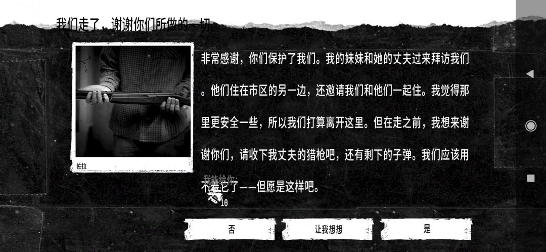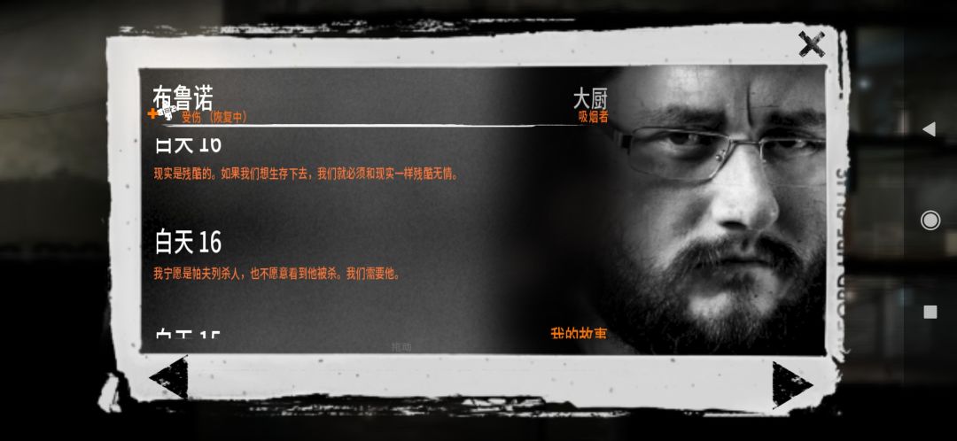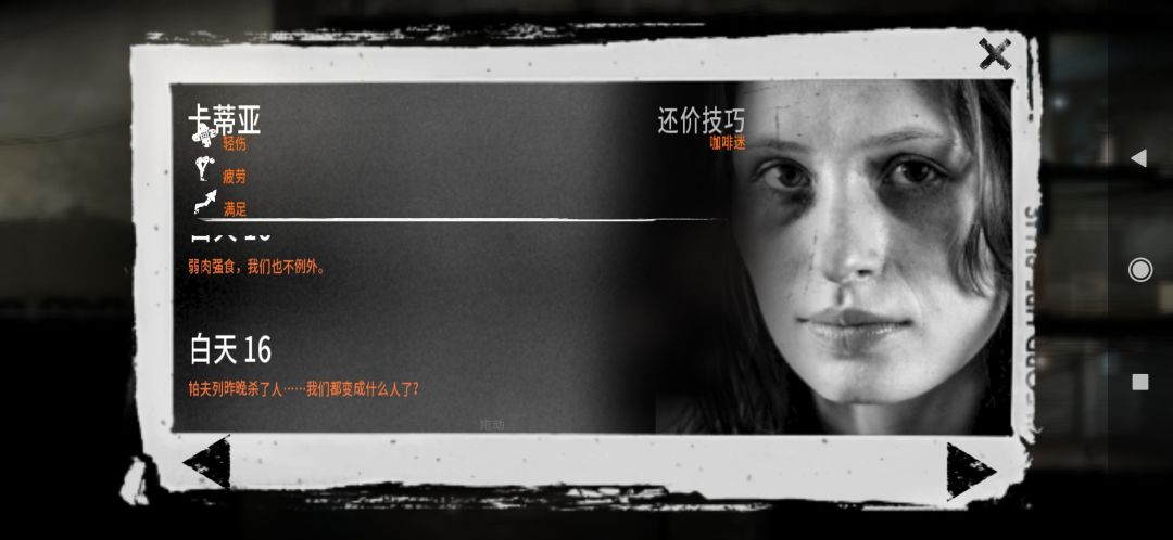 第一天我就让布鲁诺去连刀三美,回来直接奔溃,然后直接让三人饿一天,然后偷东西,继续用布鲁诺杀了汽修站的父子,切记,别留下老不死的,因为以前突发善心,可这老头就是带了空间装备,直接把所有工具和物资带走,第二晚再去的时候,什么都没了!然后就让布鲁诺去挑战别墅废墟的四名兵痞,打死一个然后被重伤!回家之后两名队友直接爆发戾气!哪怕烧杀抢掠,去医院抢劫也要救活厨师布鲁诺,自此,三煞降临!开启霸主纪元,活下来才能对邻居抛出善良!