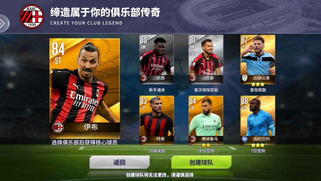 作为一名超过30年的圣西罗南看台死忠,我毫不犹豫的选择了米兰,但是一看到球员,我愣住了。WHAT!?我大奉先数值才84!?作为当时与梅罗齐名的前锋,尽管年届四旬,且近来伤病不断,但一到了绿茵场上,仍保有着舍我其谁的霸气,以及视进球如拾草芥的状态,84,太低了!再看看其他球员,苏索也就算了,好歹也为米兰效力过。因莫比莱、库利巴利什么鬼?就算因莫比莱是足坛流浪汉,但是也从来没在米兰城停留过啊。好歹来个恰球王啊!不过在当我看到切尔西和利物浦的球员时(孙兴慜在蓝军、凯恩在红军),我默默的接受了现实,还是选择了我毛。