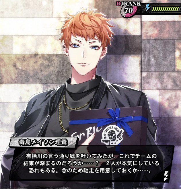 rio:听了有栖川的话试着撒了谎,这样可以让队伍更团结吗...? 被那两个人当真也有可能。慎重起见招待他们一顿吧…。